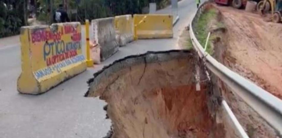 Colapsó un carril en un tramo de la carretera que comunica los municipios Jarabacoa y Constanza, de la provincia La Vega.