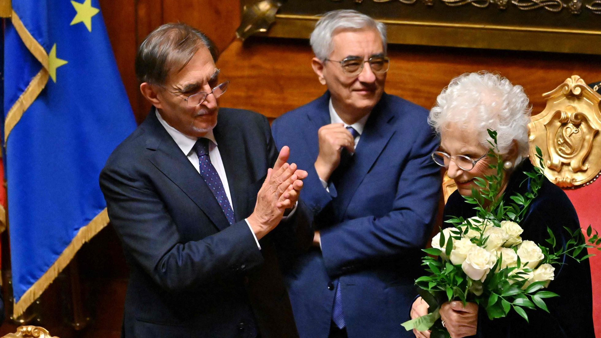 Segre, nombrada en 2018 senadora vitalicia por el presidente de la República, Sergio Mattarella, “por haber ilustrado a la Patria con altos méritos en el ámbito social”, también es desde 2021 presidenta de la Comisión Extraordinaria de lucha contra los fenómenos de intolerancia, racismo, antisemitismo e incitación al odio y la violencia. La mayoría de parlamentarios se levantó a aplaudirle. Algunos miembros de la bancada de la derecha pusieron cara de circunstancia. Pero el propio La Russa— que ha mostrado en alguna ocasión su colección de parafernalia fascista en casa y cuyo segundo nombre coincide, no por casualidad, con el del dictador Benito Mussolini— se acercó a ella para felicitarla.