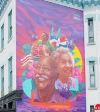 Esta pieza de arte plasma la trayectoria de la comunidad dominicana en Washington, representada por dos figuras emblemáticas, Casilda Luna y Daniel Bueno, activistas sociales que contribuyeron en grande al desarrollo de sus compatriotas y defendieron sus derechos.