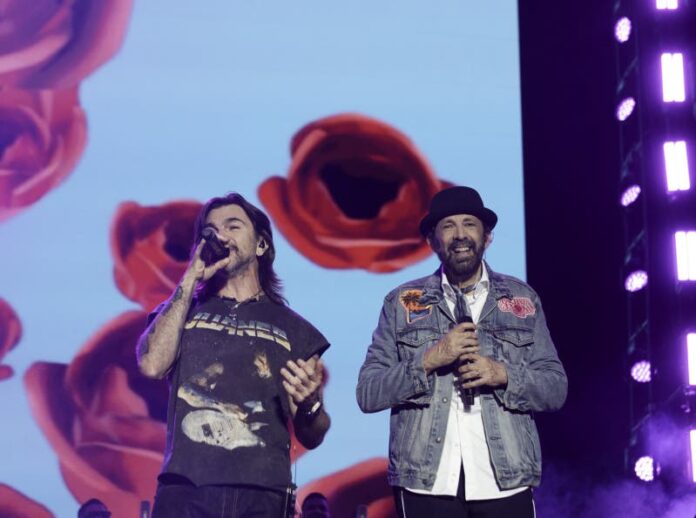 El dominicano, quien se hizo acompañar de su amigo Juanes para interpretar “Bachata rosa”, le regaló al público uno de los momentos más emblemáticos de la noche con esa pieza. Luego le dio paso, en solitario a “Como tú no hay ninguna”, “El Niágara en bicicleta”, “La travesía”, “Ojalá que llueva café en el campo”, “El farolito”, entre otros.