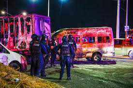 Autoridades auxilian a personas heridas de bala en Culiacán, el 19 de mayo.