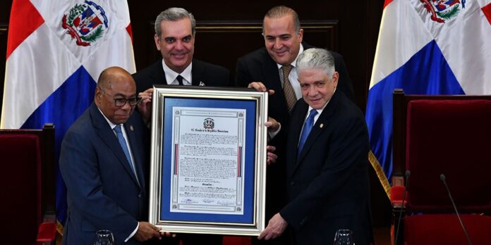 En el emblemático acto, realizado en el Salón de la Asamblea Nacional del Congreso y al que asistió el presidente Luis Abinader, la Cámara Alta describió al magistrado como un ejemplo para estudiantes, investigadores y juristas; así como por asumir un compromiso inquebrantable en la defensa, impulso y enseñanza de la Constitución en favor de la institucionalidad del país.